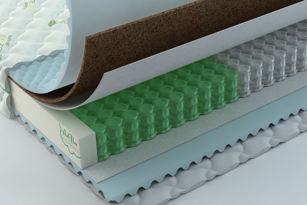 Пружинный матрас Artflex Ланден с разными сторонами жесткости. Благодаря сочетанию кокосовой койры и эрголатекса одна сторона матраса имеет классическую среднюю жесткость. Другая сторона комфортно мягкая благодаря трехсантиметровому слою из эрголатекса, который обладает микромассажным эффектом.