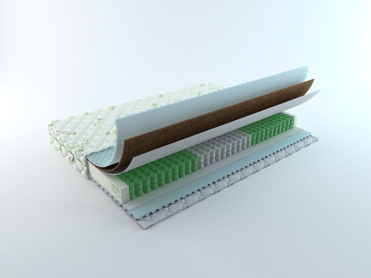 Пружинный матрас с разными сторонами жесткости. Благодаря сочетанию кокосовой койры и эрголатекса одна сторона матраса имеет классическую среднюю жесткость. Другая сторона комфортно - мягкая благодаря трехсантиметровому слою из эрголатекса, который обладает микромассажным эффектом.