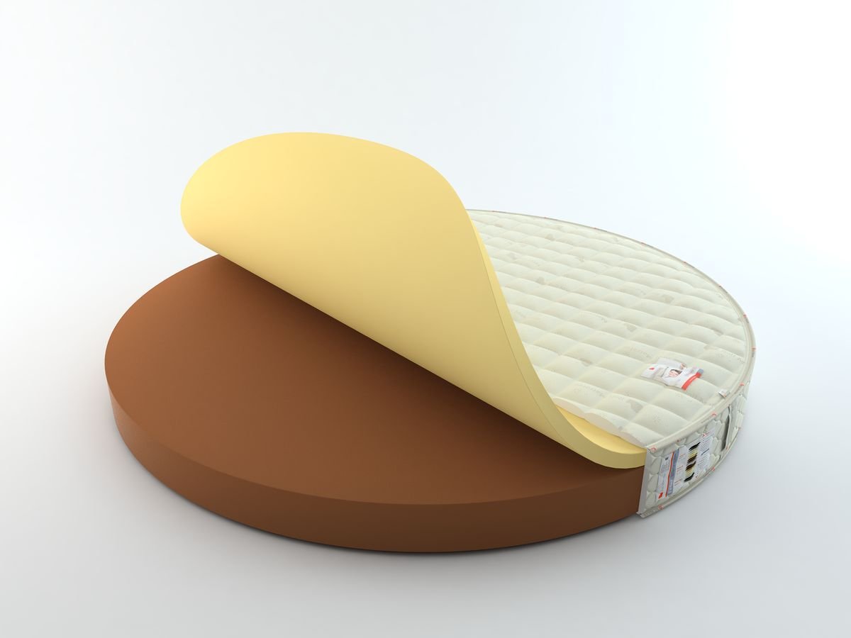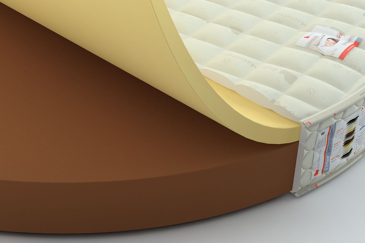 Круглый матрас BELLINI RUNDE (БЕЛЛИНИ РУНДЕ) - комбинация слоя Memory Shaum с эффектом памяти формы пр-ва компании Vita Baltic (Литва) и моноблока евро-пены Roll Schaum (высокоэластичный пенополиуретан марки ST2536), выполняющим функции корректирующего основания - прекрасная бюджетная альтернатива основанию из натурального латекса. Матрас имеет хороший анатомический эффект при умеренной стоимости, обеспечивает надежную и деликатную поддержку во время сна.